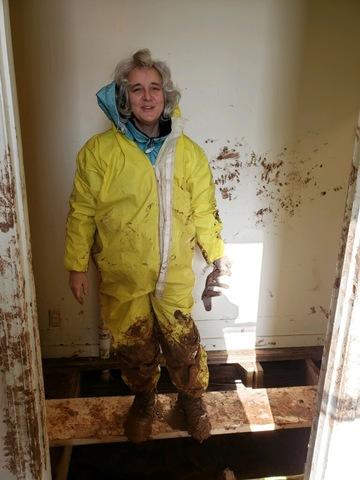 We had the office staff visit Chim's crew to view first hand what kind of working environment they are often working in! In this crawlspace the guys' had to dig out a 30 ft trench in order to pour pads under the home to eliminate a saggy floor. The crawlspace had clay mud right up to the floor joists that needed to be removed before the guys could even get in!!! Each member of the office staff put on a suit and crawled under there. We could not say WOWWW!!!!! enough! Each one of us have all the respect in the world for the work that these guys' do!! We are so lucky as a company to have hard-working guys that really don't complain about much! They are changing our customers lives' by putting value back into thier homes and I don't think a thank you is enough!!! Pictured is the boss Nancy coming out of the Crawl space- the guys couldn't pass this opportunity for a picture! Needless to say lunch for the day was on Nancy!